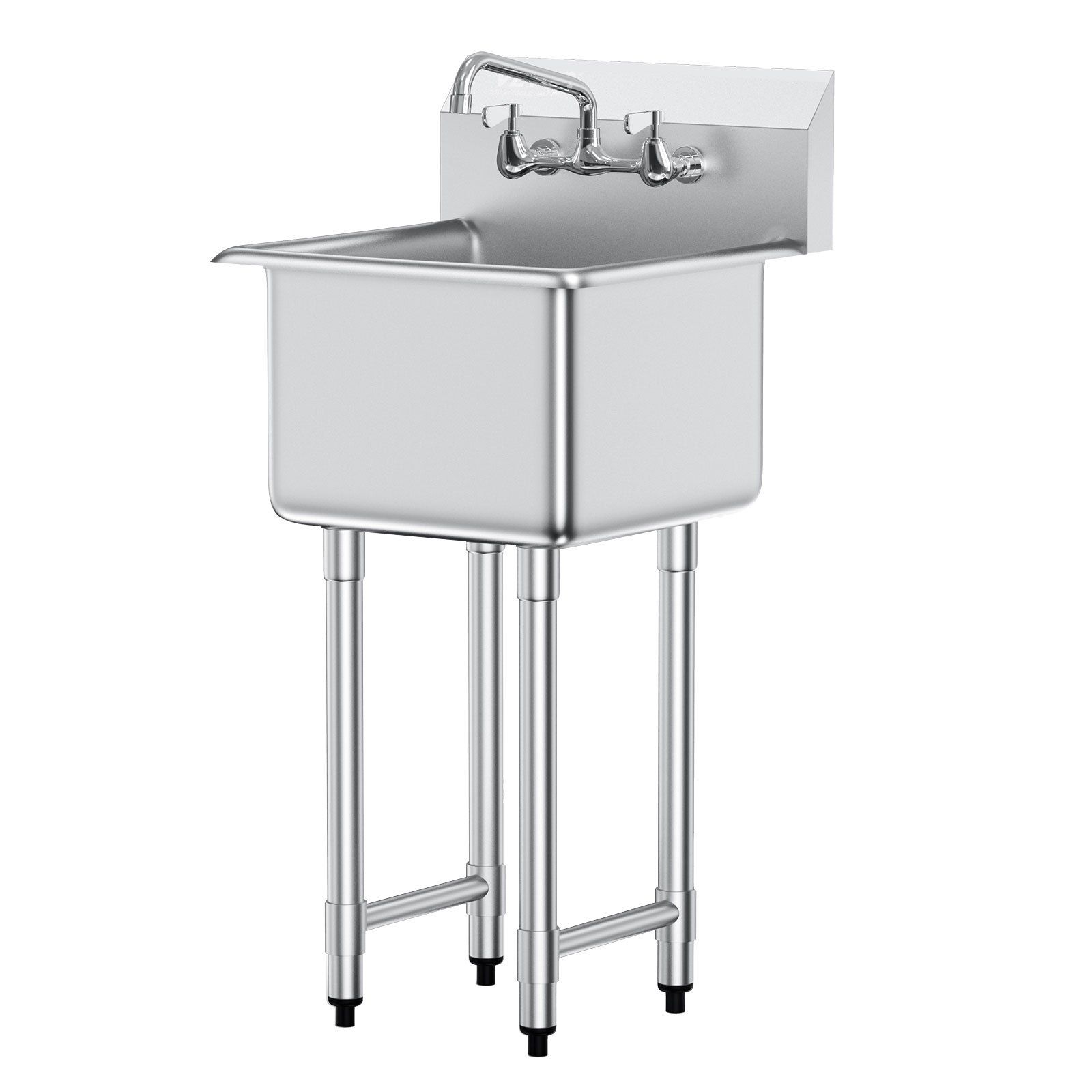 Do you worry about water stains on your walls near the sink? This commercial-grade sink is made of stainless steel, ensuring durability. Its legs are sturdy and have adjustable levelers, making it suitable for use in various settings such as garages, laundry rooms, basements, and restaurants.
