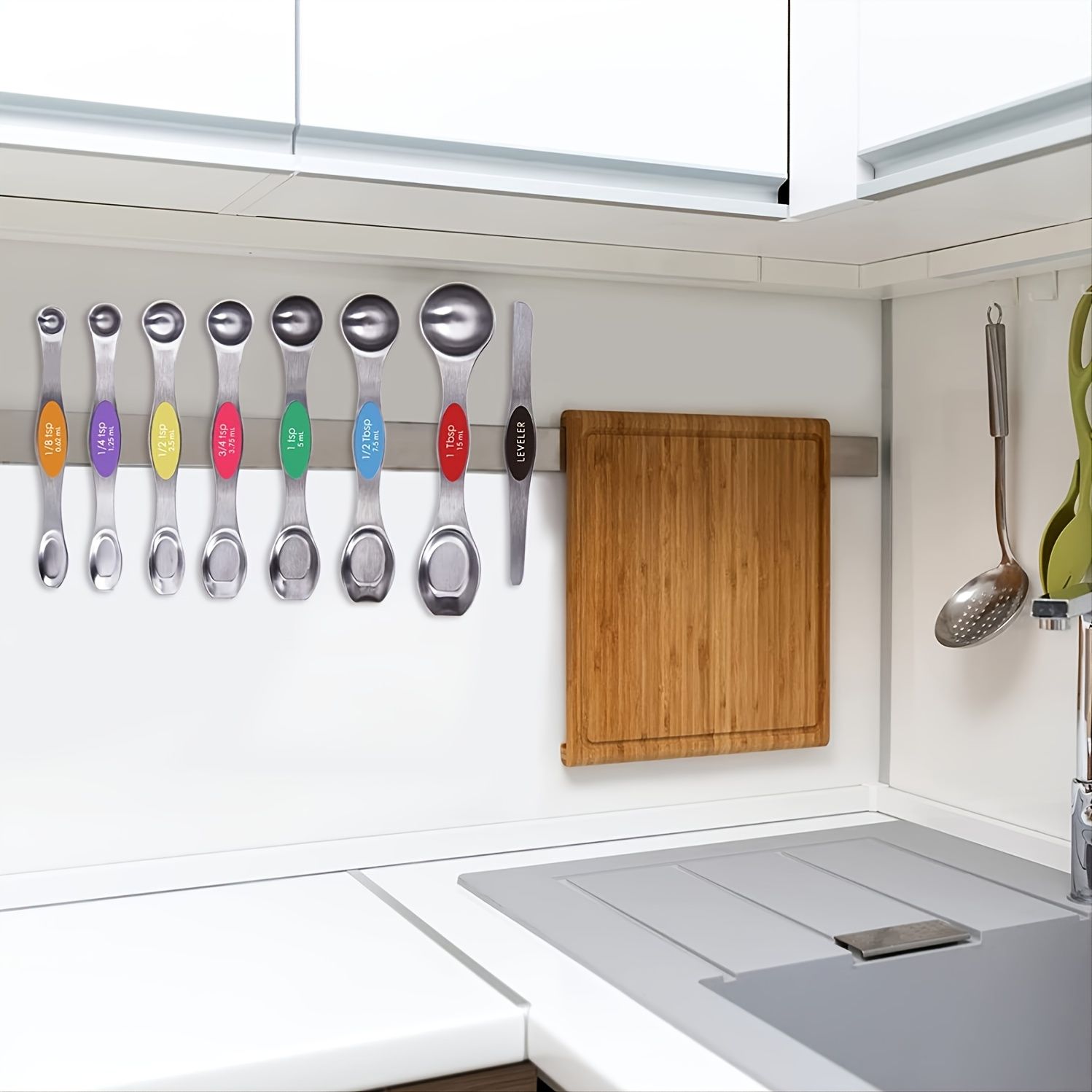 Home > Set Of 8; Magnetic Measuring Spoon Set; Double Sided Stainless Steel Measuring Spoons; Fits In Spice Jars; Stackable Teaspoons; For Measuring Dry And