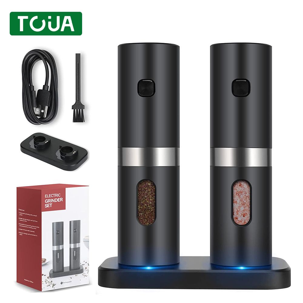 Home > Electric Salt And Pepper Grinder Set With Charging Base Automatic Salt Pepper Mill Refillable Adjustable Coarseness Salt Grinder