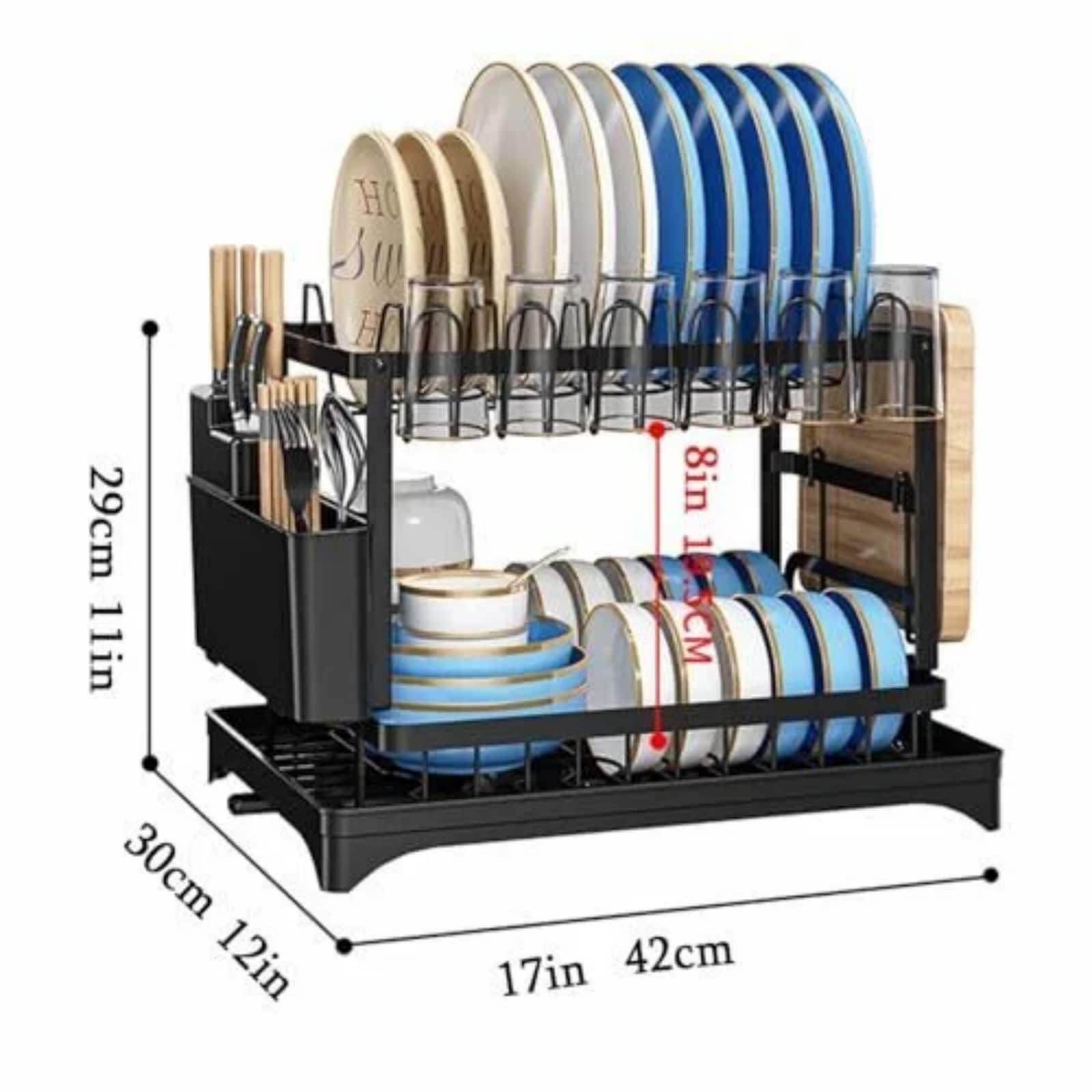 • ��2 Tier Dish Rack For Space Saving: The Feature Of This Dish Drying Racks Is Designed To Fit Compact Kitchen, And It Can Hold 11 Plates, 18 Bowls, 6 Glasses, Various Utensils, Etc.Perfect For A Small Kitchen, Make Your Kitchen Work Easier.
